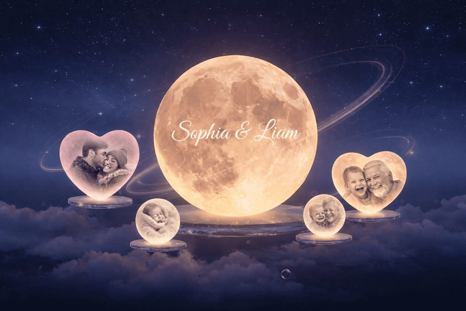 MVP Shop is jouw favoriete winkel voor de meest unieke cadeaus. Onze gepersonaliseerde maanlampen zijn bijzonder populair, een absolute aanrader! Deze nachtlampen hebben de vorm van een ronde of hartvormige maan en kunnen worden voorzien van een eigen foto en tekst. Voor elke gelegenheid een cadeau!